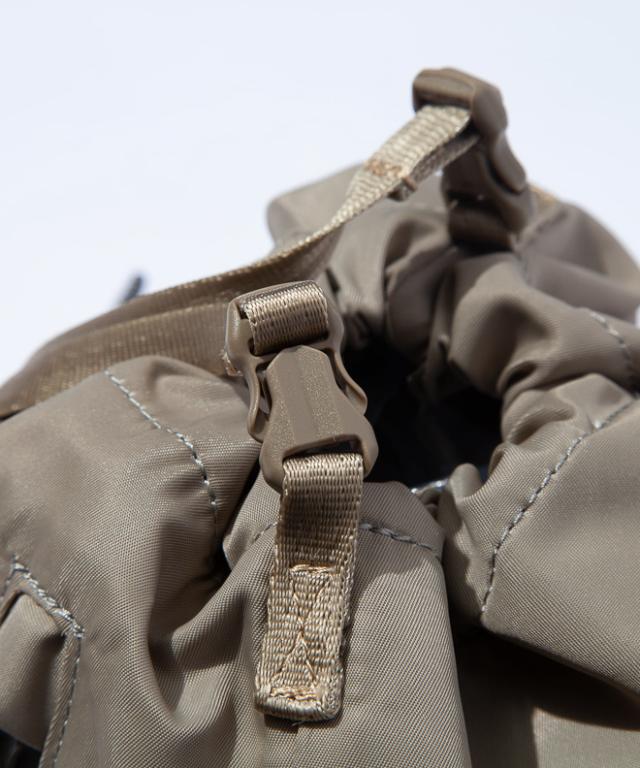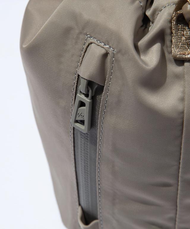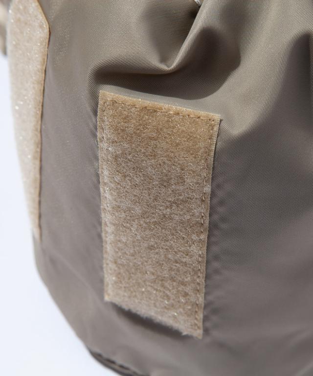 環境を意識したエコなツイル生地は、ナイロンの耐久性とリサイクル素材の柔軟性を兼ね備え、都会的な洗練された光沢感を表現しています。