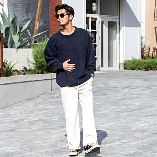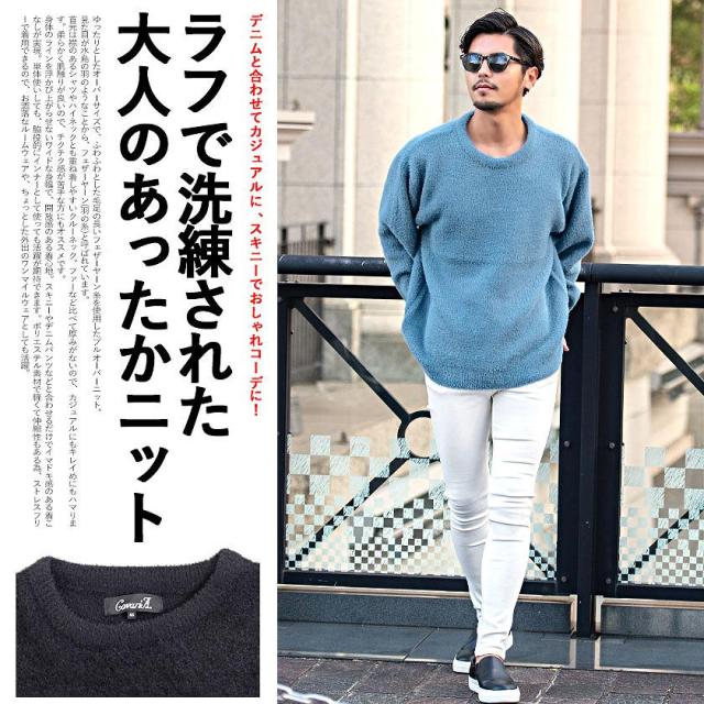 ニット メンズ オーバーサイズ セーター フェザーヤーン もこもこ ふんわり モコモコ モヘア モヘヤ ストリート ストリート系 ストリートファッション ルームウェア ワンマイルウェア 部屋着 大人 シンプル 無地 トップス 大きいサイズ あったか 暖かい 防寒 クルーネック ブラック ベージュ 黒 M L CavariA 20代 30代 40代 ユニセックス 男性 男 服 秋 冬 秋冬 ファッション リモートワーク 在宅勤務 ビジネス ゴルフ ゴルフウェア ゴルフウエア ゴルフ用品 男性 男 父の日 父の日ギフト 父の日プレゼント 20代 30代 40代 メンズファッション 東京 プレゼント 誕生日 記念日 贈り物 ギフト シャギーニット パイル編み エアリーニット フラッフィーヤーン バルキーセーター ソフトタッチ素材 ルーズフィットニット マシュマロニット配送について