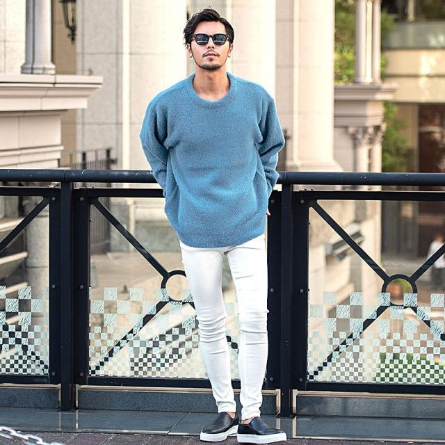 スキニーやデニムパンツなどと合わせるだけでイマドキ感のある着こなしが実現。