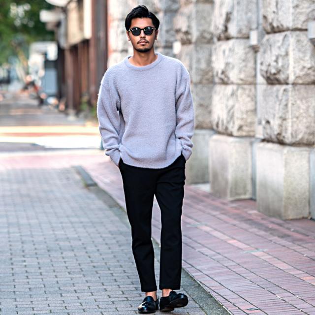首元は襟のあるシャツやハイネックとも重ね着しやすいクルーネック。