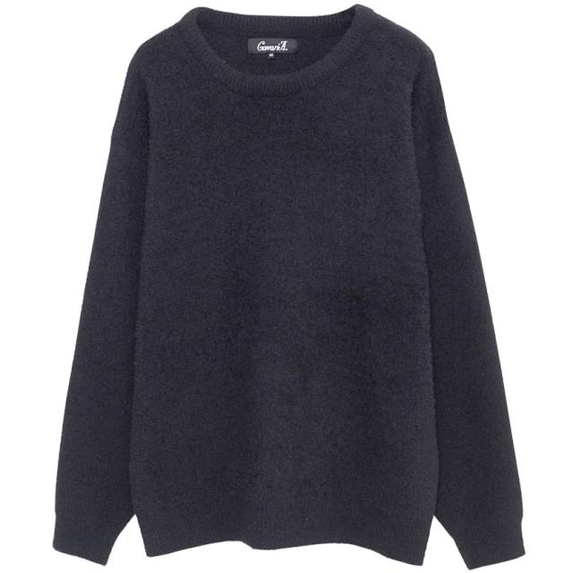 ニット メンズ セーター フェザーヤーン 大きいサイズ 大人 シンプル 無地 トップス あったか 暖かい 防寒着 シンプル 無地 大人 クルーネック ブラック ベージュ 黒 M L CavariA 20代 30代 40代 50代 ユニセックス 男性 男 服 秋 冬 秋冬 ファッション[CASS23-06]