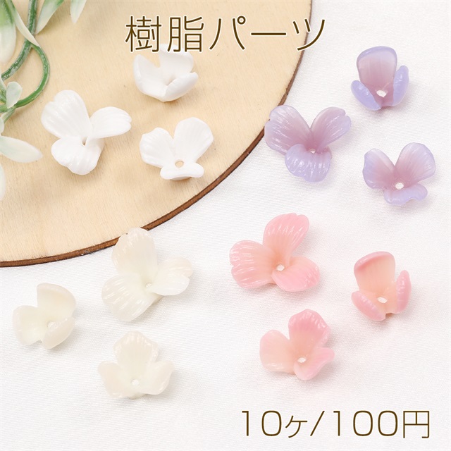 立体フラワーパーツ 樹脂ビーズキャップ フラワーチャーム 花座 小花パーツ 三弁花 中心穴あり(10ヶ)