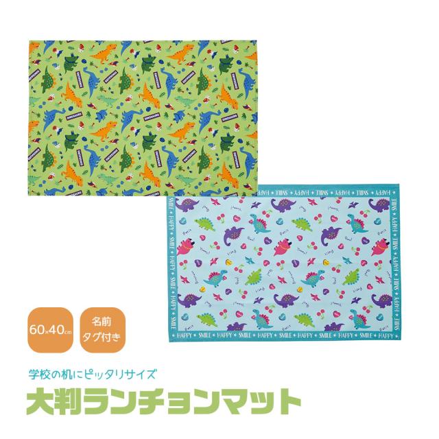 \今だけ10%OFF/ ランチョンマット 大判 小学校 かわいい キャラクター 洗える 子供 子ども 学校 幼稚園 保育園 給食 弁当 ランチ キッズ ランチクロス 名前タグ付き 大きめ 大きい 恐竜 ディノサウルス LTM1