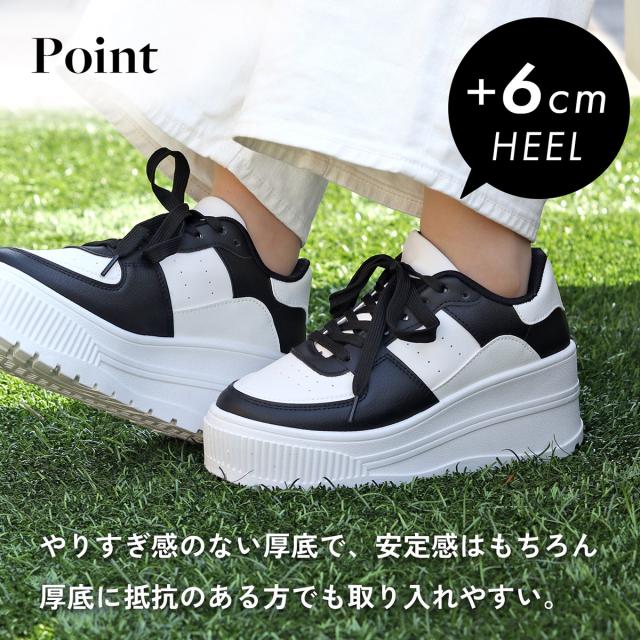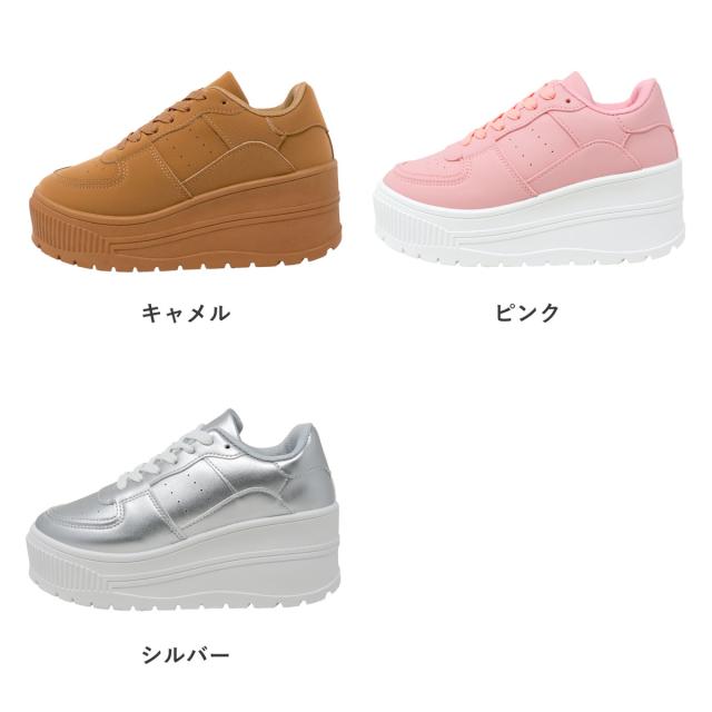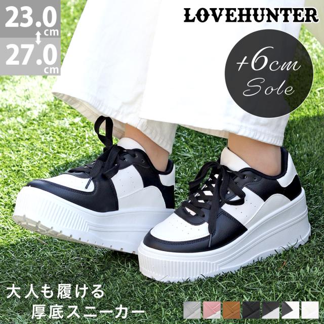 スニーカー 厚底 レディース 紐 ローカット 6cmヒール No.1650 23-27cm ブラック ホワイト LOVEHUNTER ラブハンター ピンク シルバー キャメル