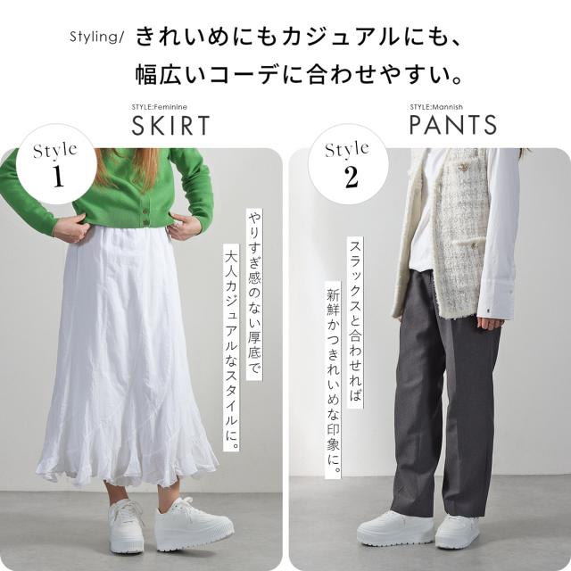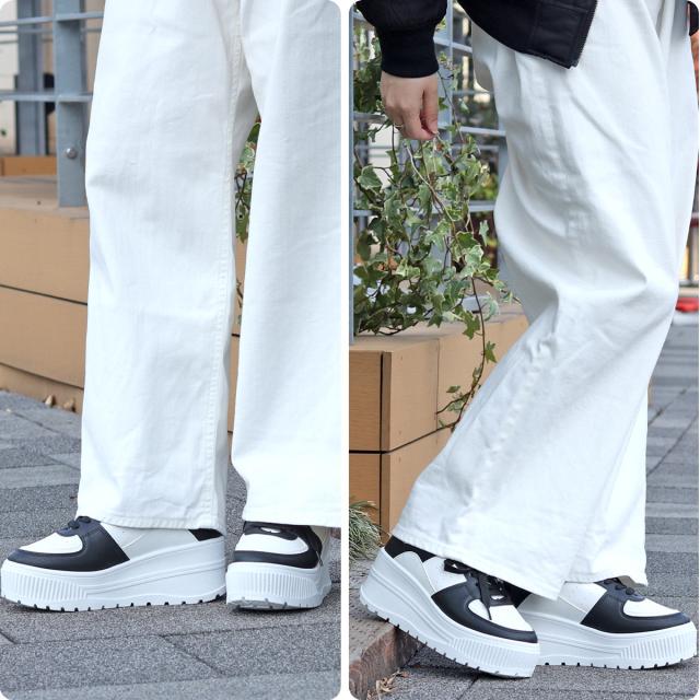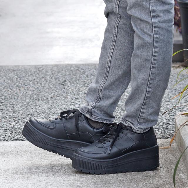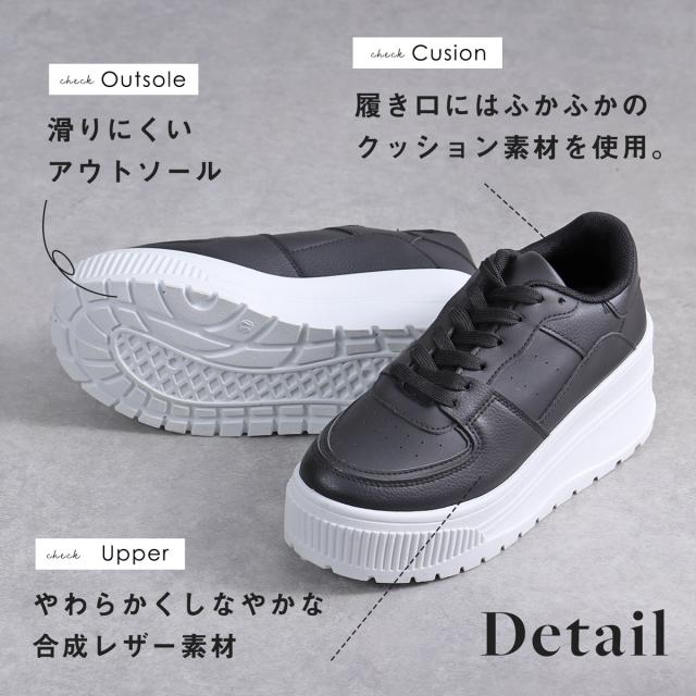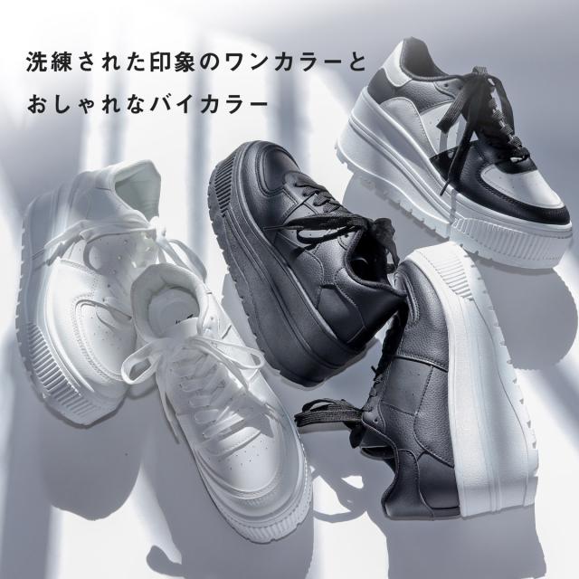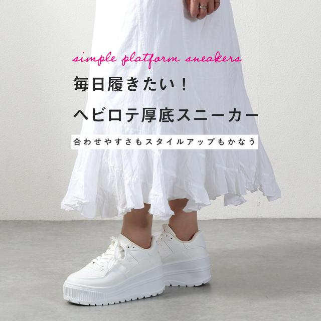 シンプルでコーデにマッチしやすいデザインの厚底スニーカー。