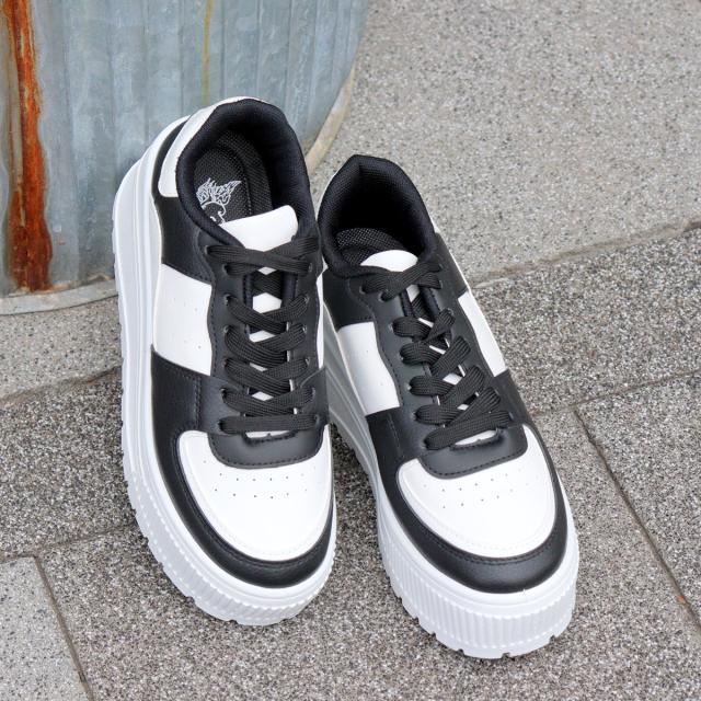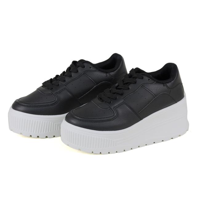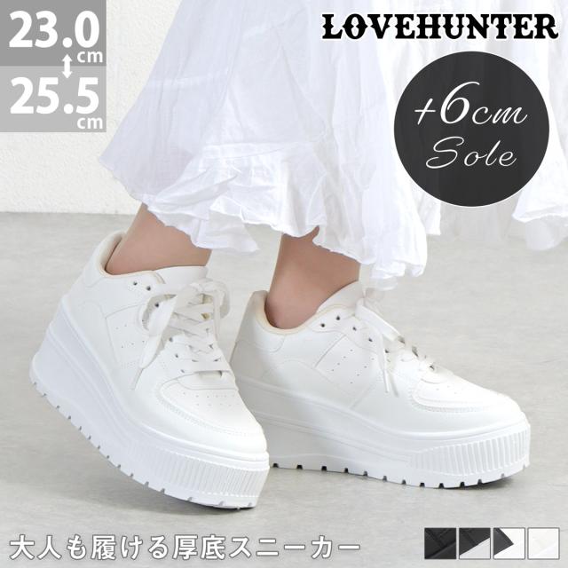 スニーカー 厚底 レディース 紐 ローカット 6cmヒール No.1650 23.0-25.5cm ブラック ホワイト LOVEHUNTER ラブハンター