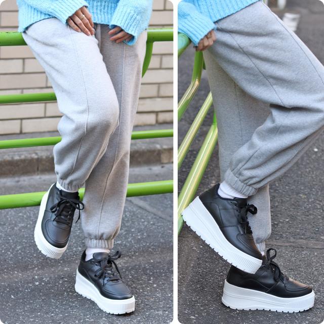 シンプルでコーデにマッチしやすいデザインの厚底スニーカー。