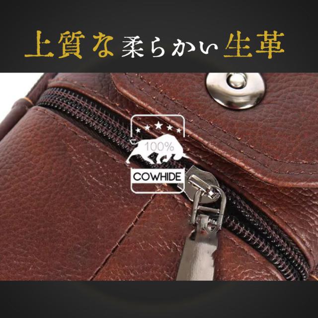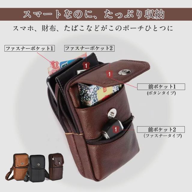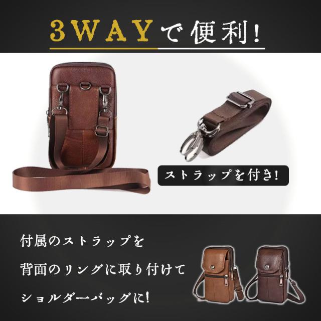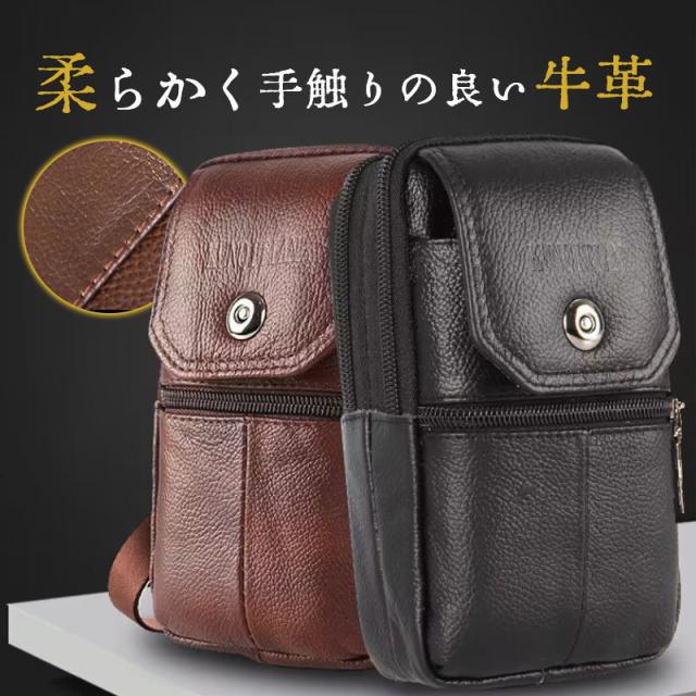 \即納/ベルトポーチ スマホポーチ メンズ 牛革 ショルダー 肩掛け バッグ かばん カラビナ 小型 仕事用 小さい アウトドア スポーツ