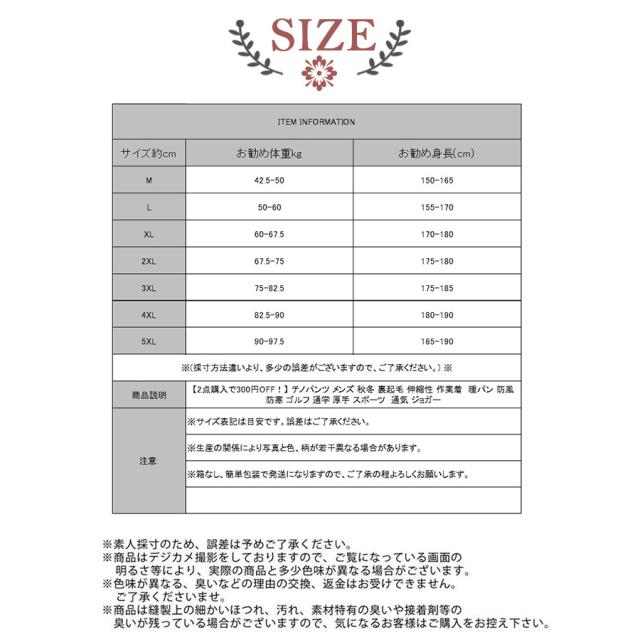 【2点購入で300円OFF!】 チノパンツ メンズ 秋冬 裏起毛 伸縮性 作業着 暖パン 防風 防寒 ゴルフ 通学 厚手 スポー