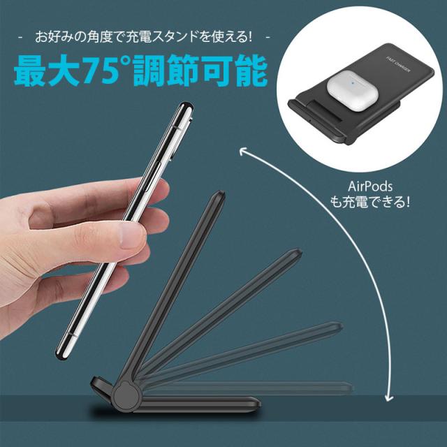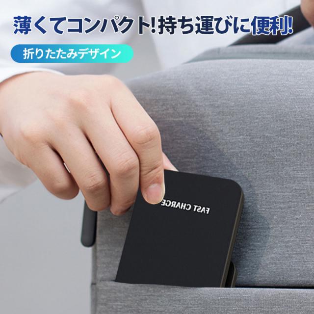 15W高速充電仕様、折りたたみ式の設計となり、収納・持ち運びに便利!