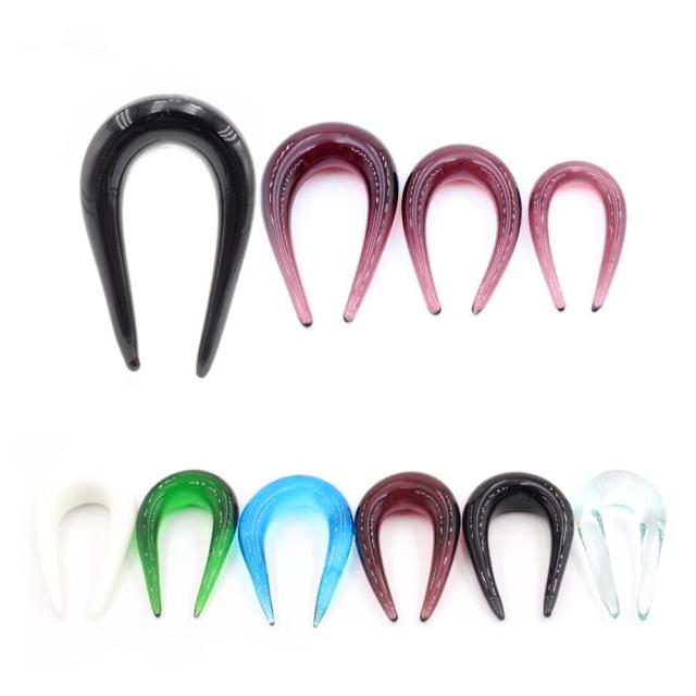 [ガラス製 ボディピアス 2G 0G 00G] U字型ガラスフック ボディーピアス メンズ レディース 金属アレルギー対応 男性 女性 プレゼント ギフト 彼氏 彼女 6ミリ 8ミリ 10ミリ 拡張 フック型 ホワイト グリーン ブルー パープル ブラック クリア 透明 白色 黒色 緑色 青色 紫色