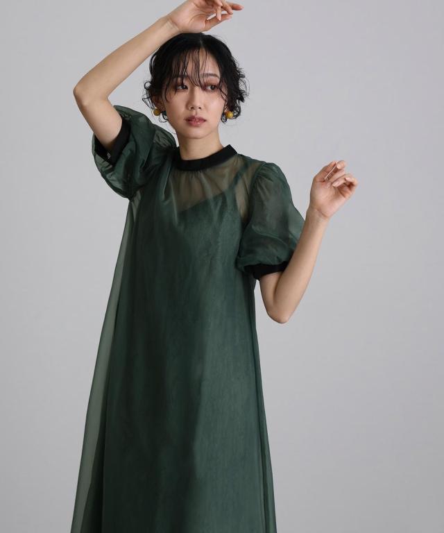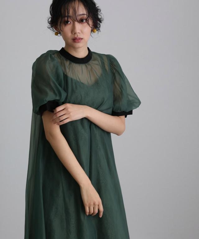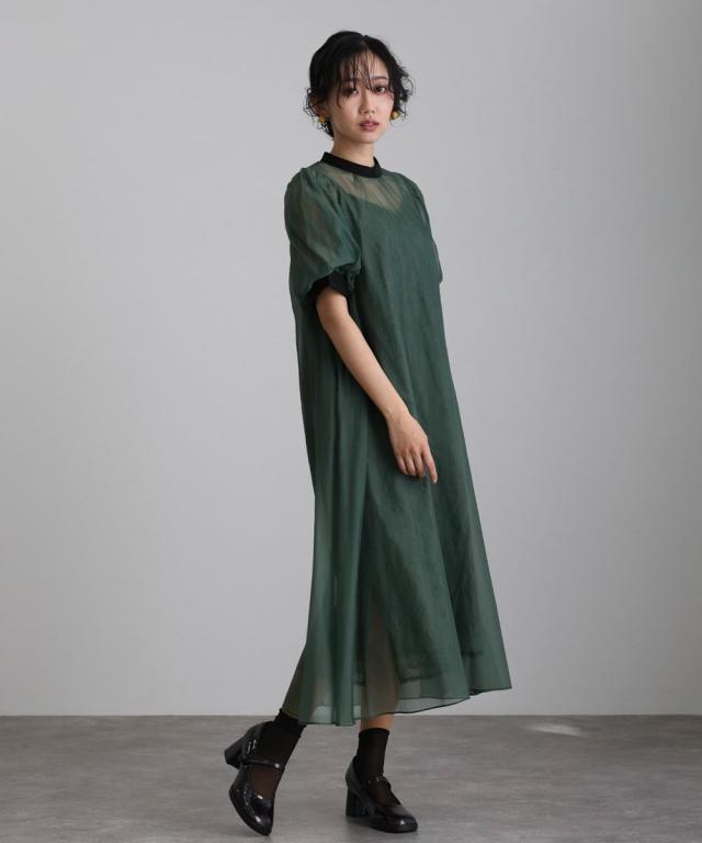 シアーオーバーワンピースと、レースキャミワンピのレイヤードセット商品です。