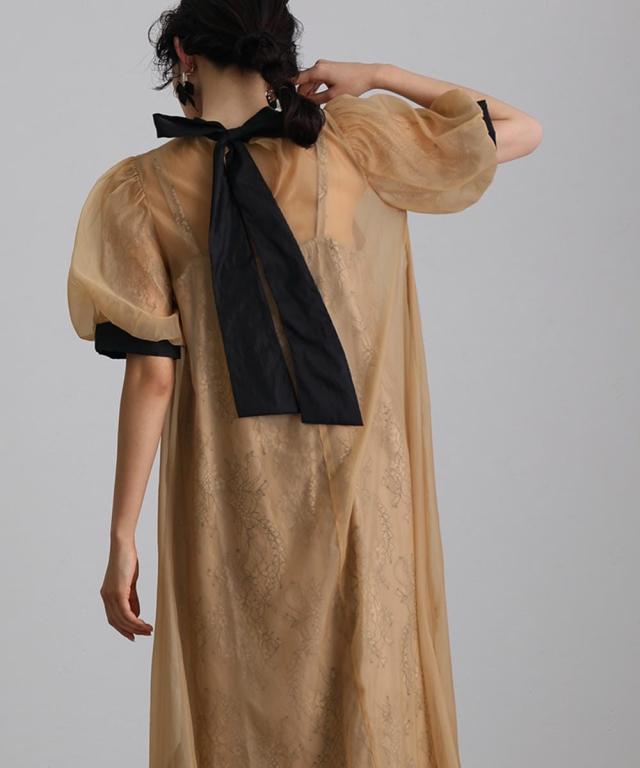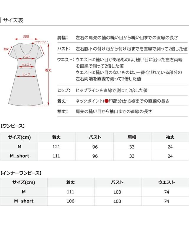 ■素材:〈ワンピース〉オーガンジー地…ポリエステル100% レース地…ナイロン90% ポリエステル10% 〈インナーワンピース〉レース地…ナイロン90% ポリエステル10% サテン地…ポリエステル100%
