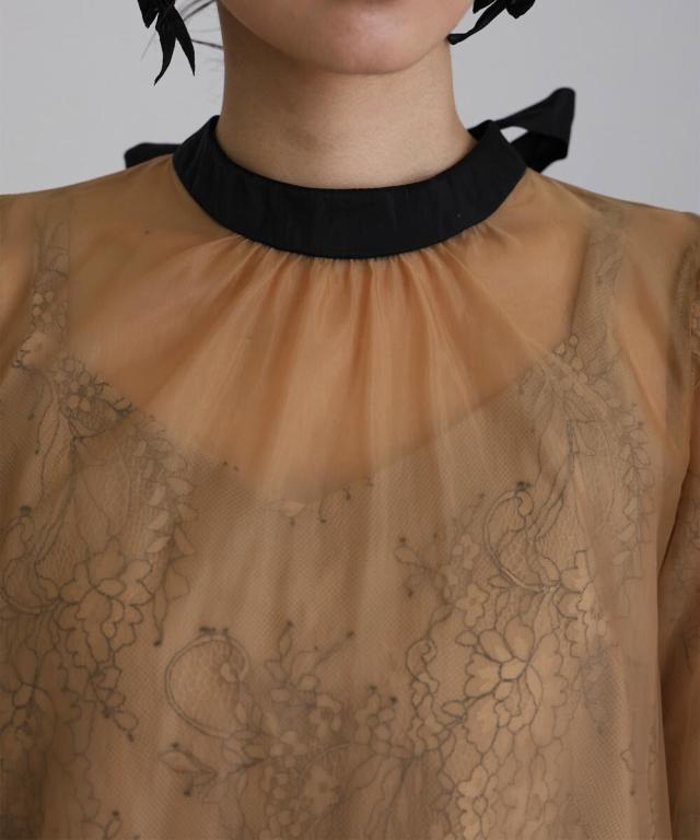 ■デコルテから袖にかけての程よい透け感が女性らしい