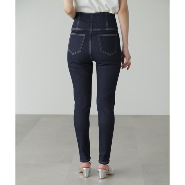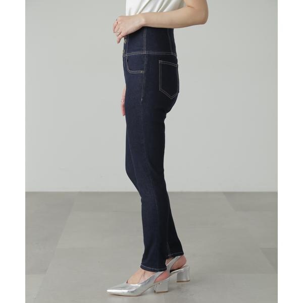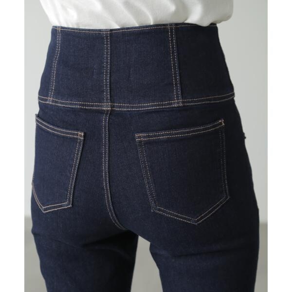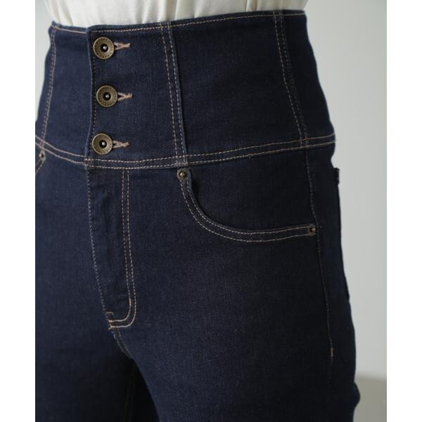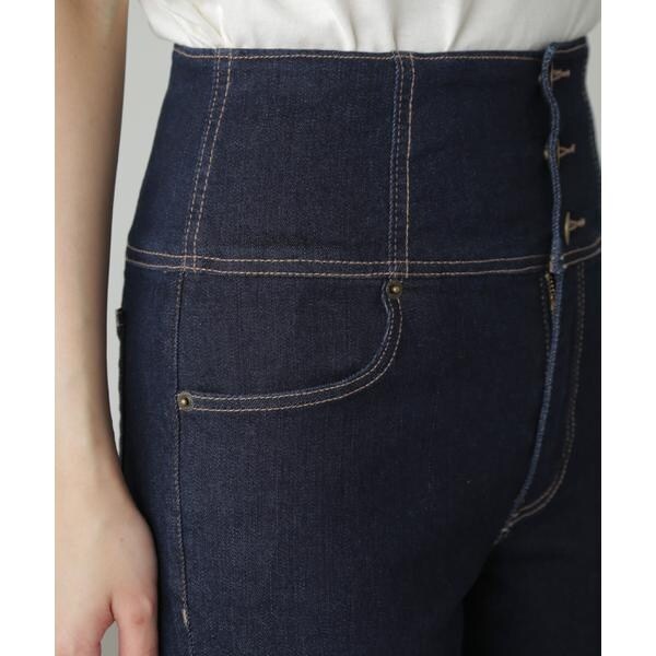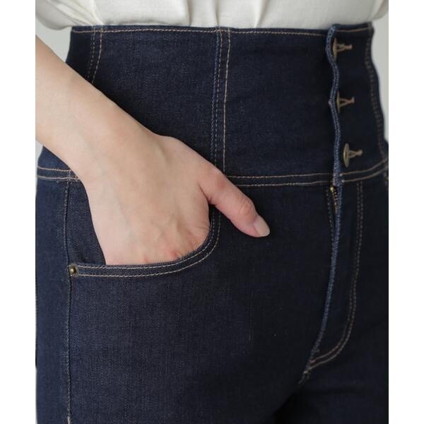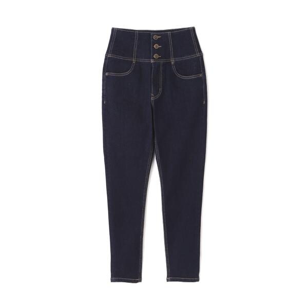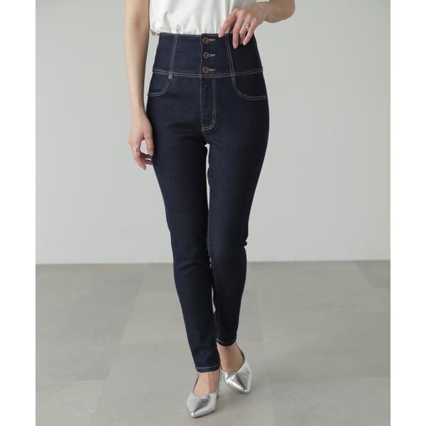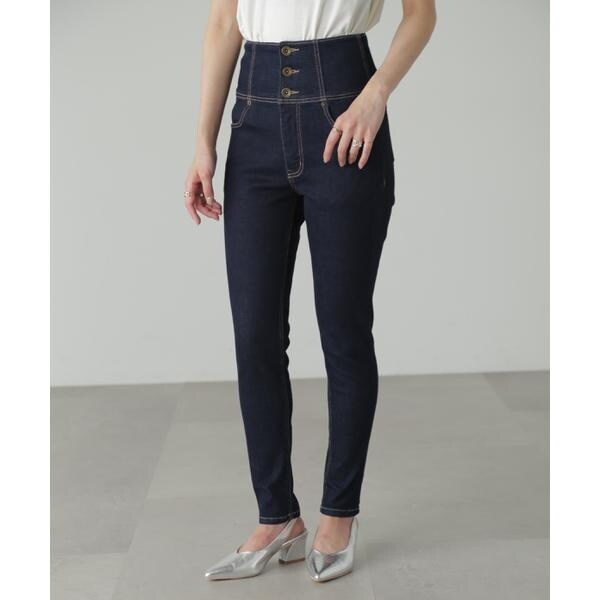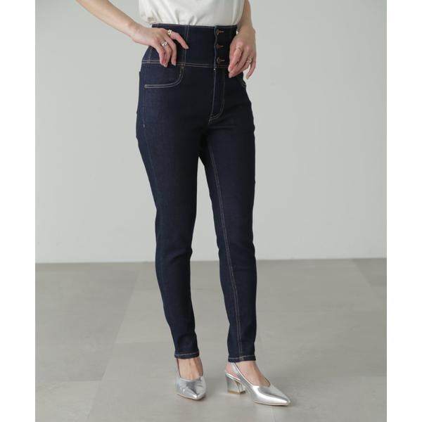 ハイウエストボタンフライスキニーデニムパンツ