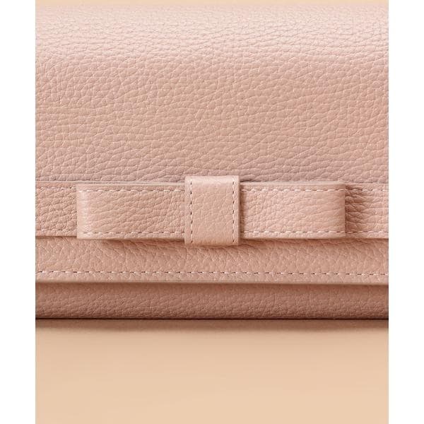 ◇Samantha Thavasa(サマンサタバサ)のエムシュシュ 長財布「エムシュシュ」シリーズから長財布が登場。【デザイン】レザーの質感とゴールドの金具がエレガントな印象を与えるデザイン。さりげないリボンモチーフで甘さを取り入れて、上品な印象に仕上げています。長財布ならではのカードポケットの充実さと背面にもフリーポケットがついているのですぐに取り出したいものも手軽に収納可能です。 【素材】大きめのシボが特徴のレザーを使用してます。傷が目立ちにくく長く使えるのが特徴です。