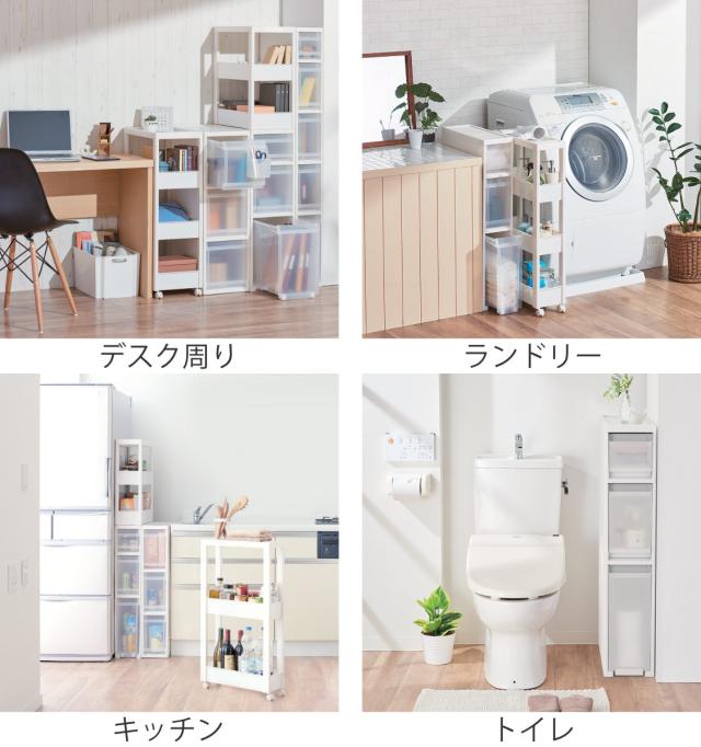 | 内容量 | 1個 付属品:内側・外側にセット可能な小物ポケット(1個)、底面4か所に取り付け可能な簡易キャスター(4個)、底面2か所に取り付け可能な脚(2個)、ワゴン(別売り)に取り付け可能な連結パーツ(4個)、単体使用時用の連結穴キャップ(4個) |