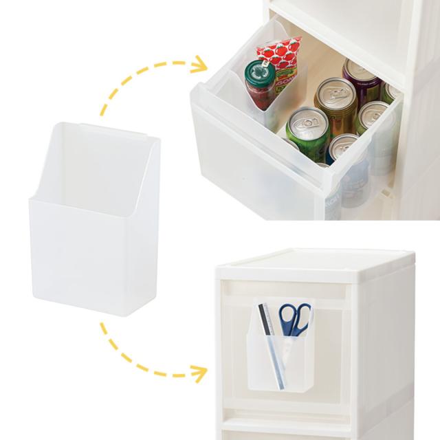 小物などをスッキリ収納できるポケットが付属。ストッカーの引き出し部分に引っ掛けてご使用ください。