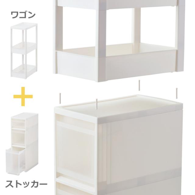 同じ幅のワゴンとストッカーは積み重ねて連結させることができます。