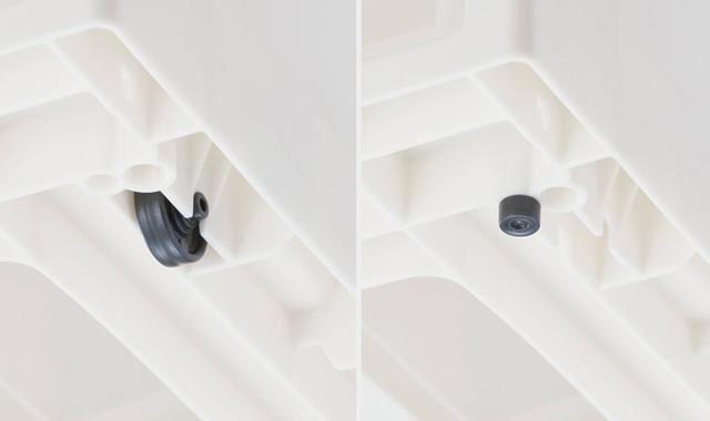 簡易キャスター4個付きで移動もラクラク。固定したい場合は脚2個に差し替えてご使用ください。