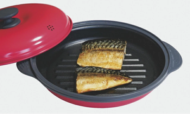 直火焼のように焼き目がくっきりついて美味しい。レンジの調理なのでお子様やご年配の方にも安心・安全。火を使わないのにこんがり調理。電子レンジでフライパンのような仕上がり。お魚、お肉、目玉焼きなど焼き目しっかり、中はふっくらに仕上がります。底面の特殊シリコーンゴムがマイクロ波を熱に変換、中はふっくら外はカリッと焼きあがる!ニオイを抑えて焼き魚も簡単。グリルいらずでらくらく調理。フッ素コーティングで焦げ付きにくく、洗うのも手間いらずラクラク。