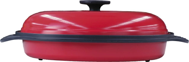 | 仕様 | (鉄板加工) 鉄板にアルミメッキをして、調理する内側にPTFEを塗装、プレート下に特殊加熱材を特殊加工法で接着・食洗器対応 耐熱温度 シリコン部分:220℃、底面加熱部分:250℃ / 耐冷温度 −50℃ |