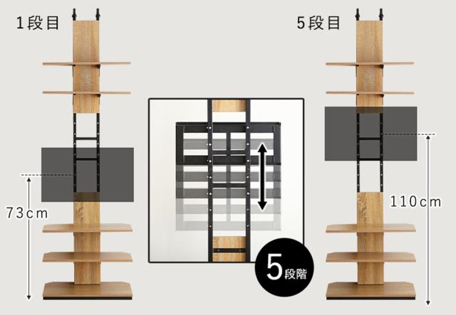 テレビを設置する高さは、7.3cmピッチで5段階の調節ができます。テレビの大きさや、使用シーンに合わせて細かく高さ調節ができます。