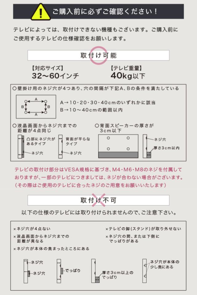 | 適応テレビサイズ | 32〜60インチ 40kg以下 |