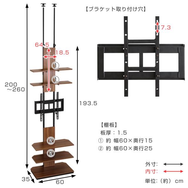 テレビスタンド 高さ200〜260cm 突っ張り 32〜60インチ対応 ( テレビ台 テレビラック つっぱり 棚 ラック スリム 壁掛け風 つっぱり式 薄型 TVラック 収納ラック 壁面収納 壁面ラック コーナー 省スペース ディスプレイ )