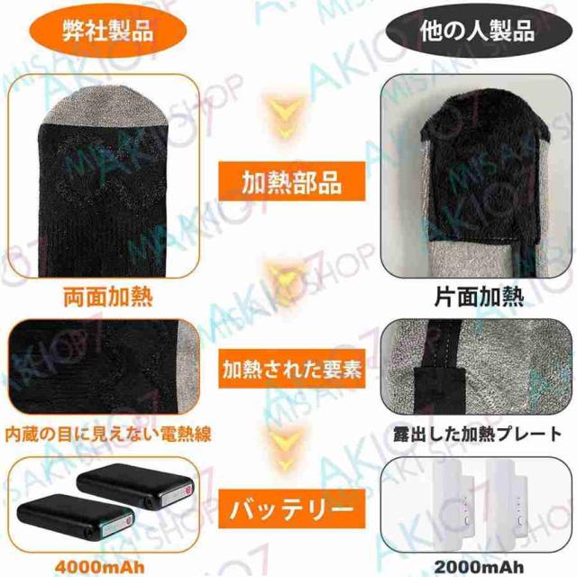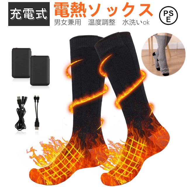 【超暖か発熱靴下】即納 バッテリー付属 発熱ソックス ヒーター靴下 水洗い可 両面発熱 4000mAh USB充電式 5-9時間持続使用 暖かい 厚手 冬用 防寒 保温