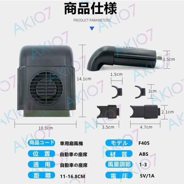 夏場の暑い車座席に設置して!体積が小さくて空間を占めなくて、車内において邪魔になりません。取り付け向きを変えてダクトを外せば後部座席に乗っている人にも涼しい風を送ることができます♪
