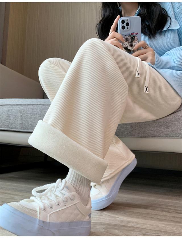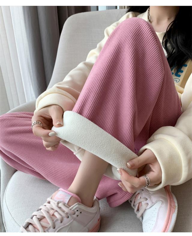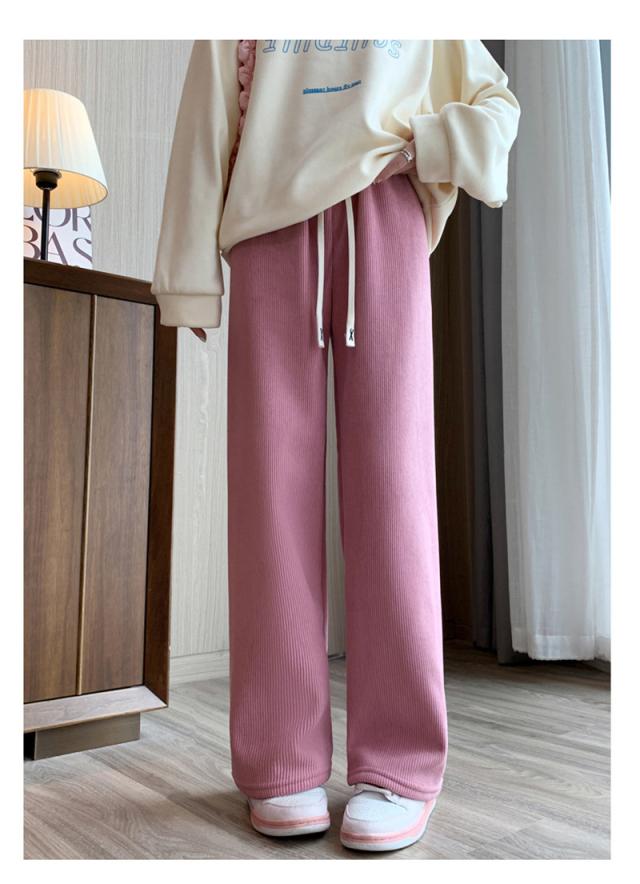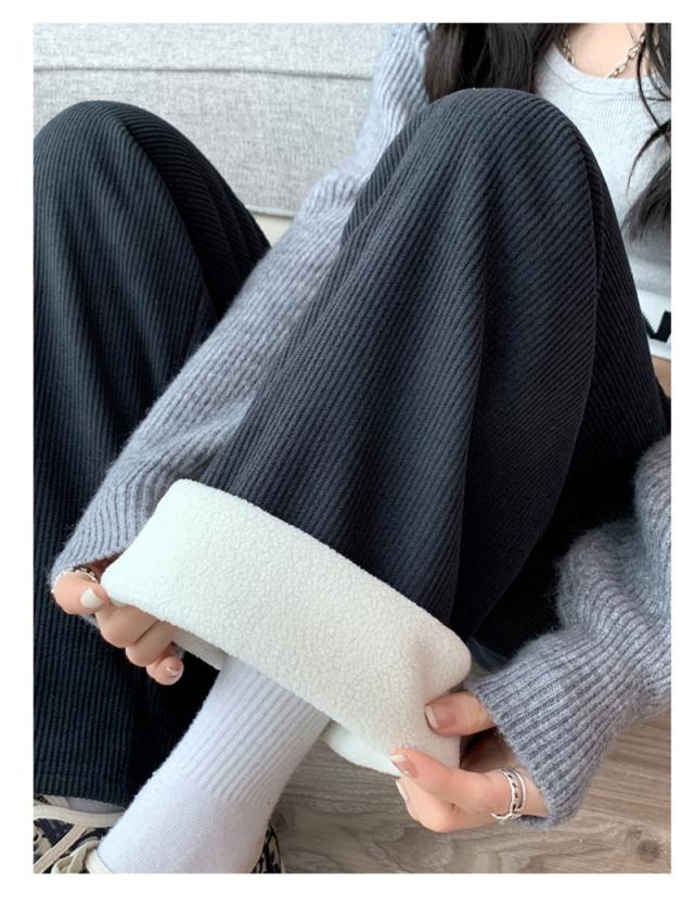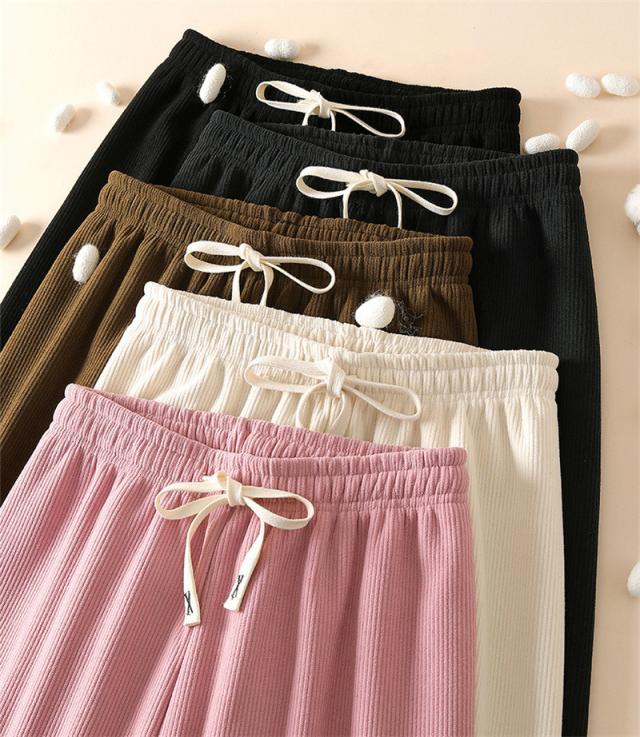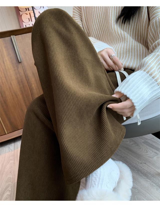 ワイドパンツ レディース 裏起毛 ワイドパンツルック コーデュロイ ボトムス ウエストゴム 柔らか肌触り 防寒 秋冬 シンプル リ