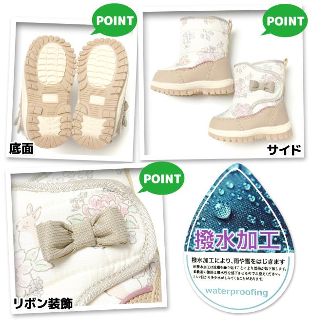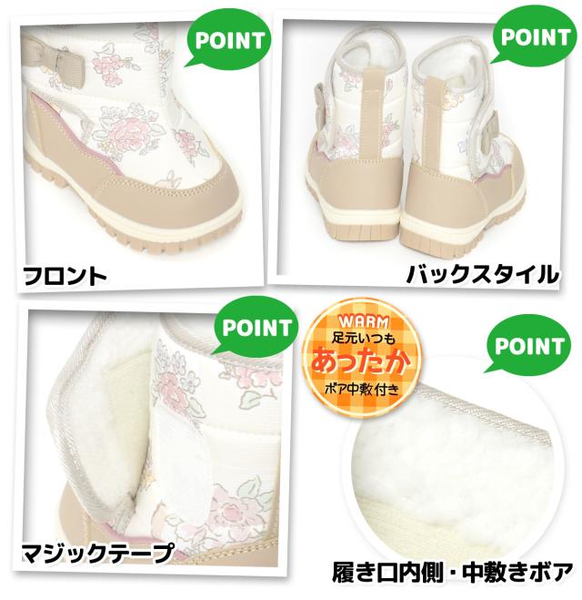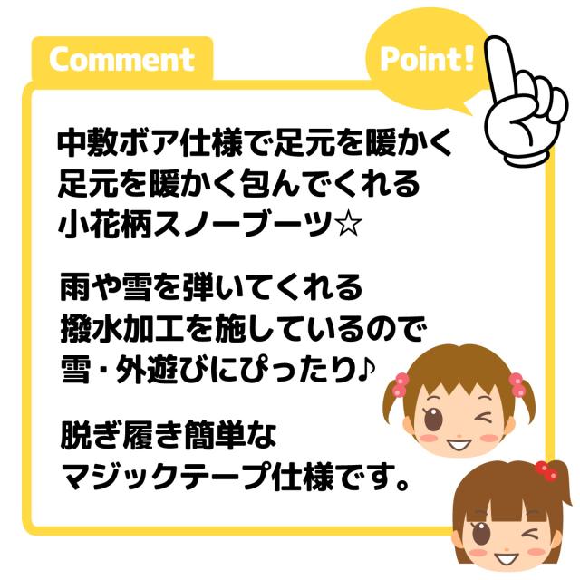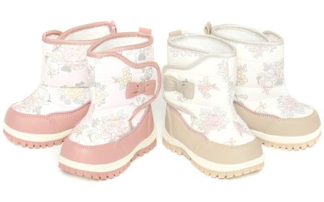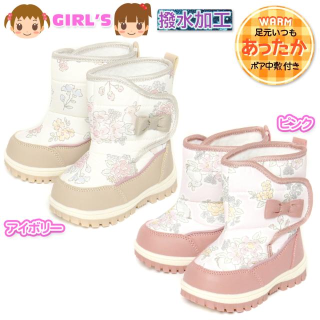 【送料無料】女児 ベビー キッズ スノーブーツ 撥水加工 ボア中敷 あったか 小花柄 リボン 靴 子供 女の子 iw-0981
