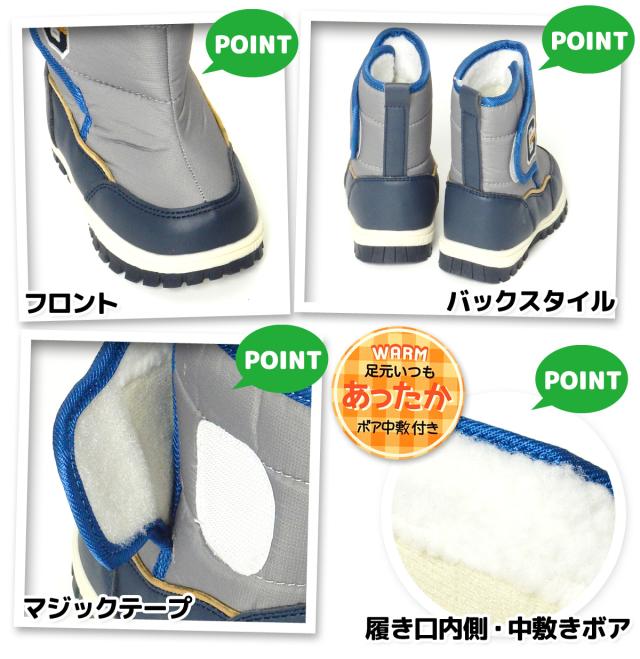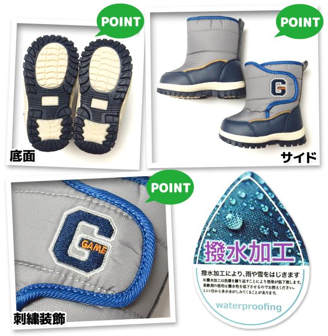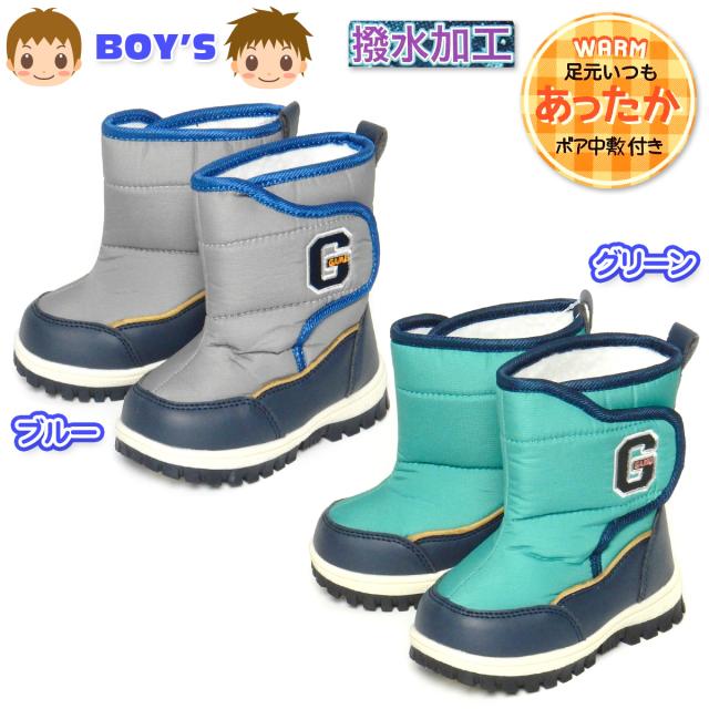 【送料無料】男児 ベビー キッズ スノーブーツ 撥水加工 ボア中敷 あったか素材 スタジャン風 刺繍 靴 子供 男の子 iw-0984
