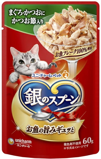 ユニチャーム 銀のスプーンパウチ まぐろ・かつおにかつお節入り 60g