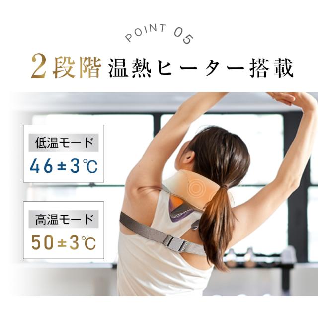 更に温熱機能も搭載でじんわり温めながらトリートメントが可能です。使用部位の疲労回復の効果も期待できます。
