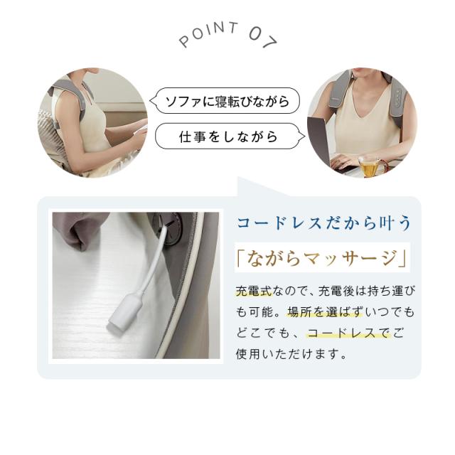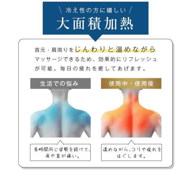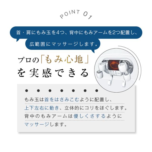 全部で4つのマッサージヘッドが首・肩に全面アプローチでき、この一台があれば、首まわりのトータルケアを叶えます。