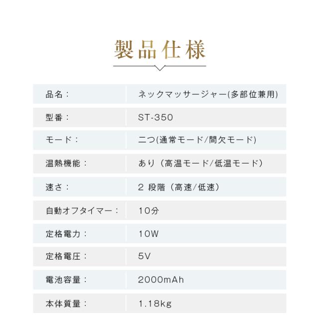 セット内容:ネックマッサージャー本体/Type-C充電ケーブル/取扱説明書