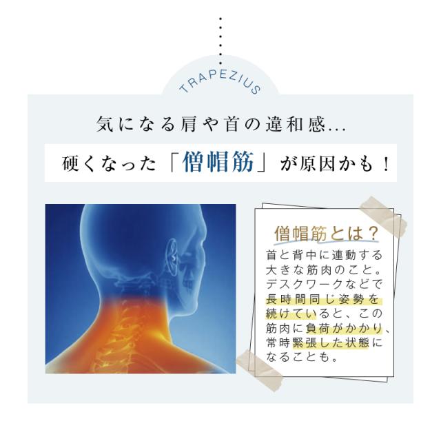 ノートパソコンやスマホを使う際、料理や家事の最中など、無意識に下を向いていることは多いはず。頭の重さを支えている首や肩は、普段から大きな負荷がかかっています。