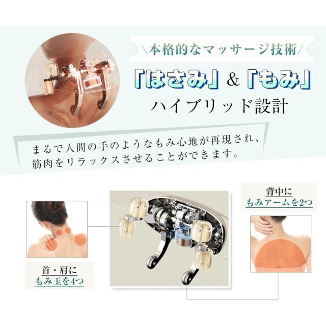 気持ちいい「揉み機能」を搭載。まるで指圧のような、ギュッと挟んでもみほぐす動きにより筋肉のこりをよくほぐします。広めにマッサージできるため、手が届きにくく背中や、凝り固まった肩甲骨まわりにもアプローチ。