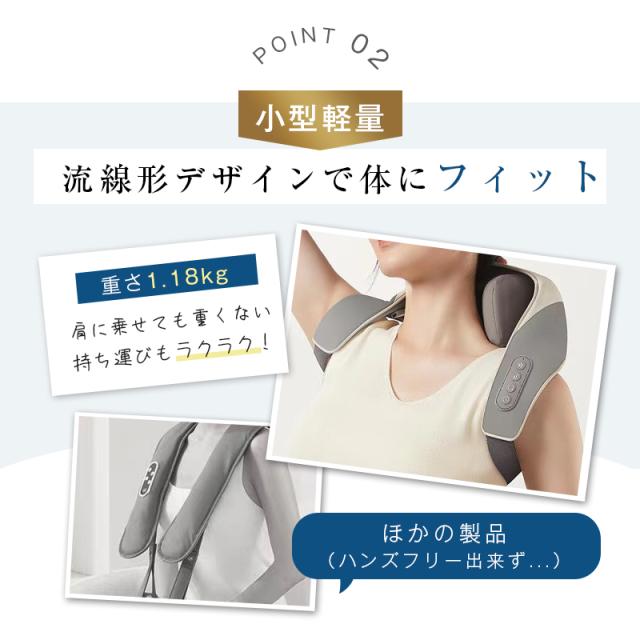 ネックマッサージャー 首肩兼用 温熱 W効果 2つのモード 揉み 肩こり リラクゼーション器 10分 オフタイマー コードレス ながらケア 【PL保険加入済み製品・安心】