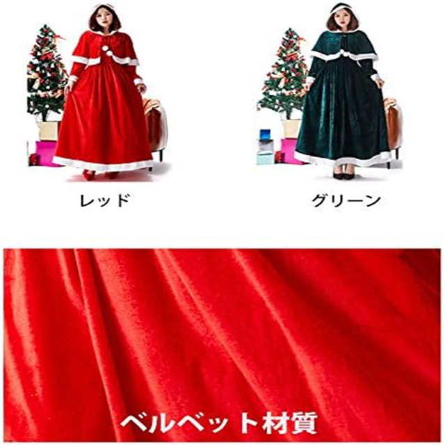 クリスマス コスプレレディース ?袖 エレガント ワンピース 帽子 マント 赤 緑 クリスマス コスプレ大きいサイズ 演出服 イベント パーティー 新年会 文化祭