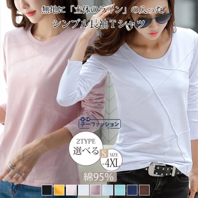 <1点あたり1,450円!2点同時購入&クーポン利用で> 長袖Tシャツ Tシャツ tシャツ 冬新作 新作 選べる2タイプ レディース 立体ライン 長袖 Tシャツ ティーシャツ インナー 綿 コットン クルーネック ラインデザイン 可愛い 無地 カジュアル トップス カットソー 秋冬