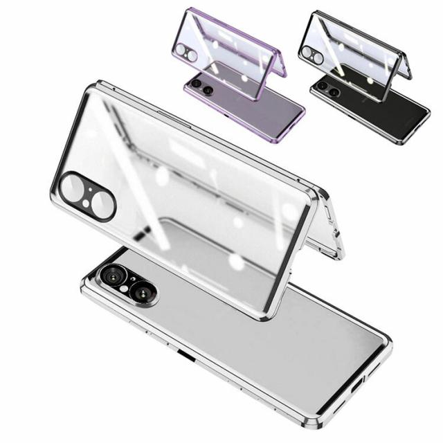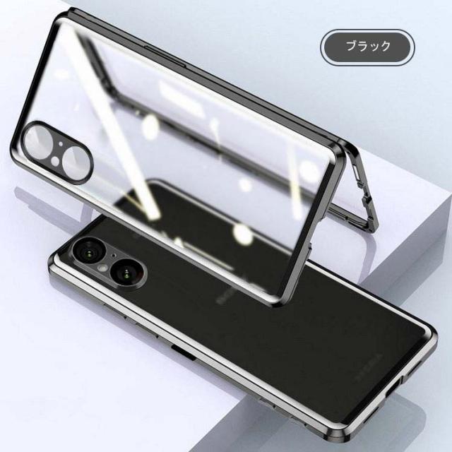 Xperia 5 V ケース 全面保護 カバー アルミバンパー クリア 透明 前後 強化ガラス かっこいい Sony ソニー エクスぺリア5 V SOG12/SO-53D/XQ-DE44 アルミサイドバンパー おすすめ