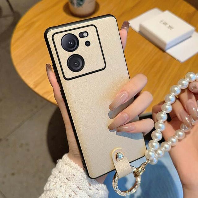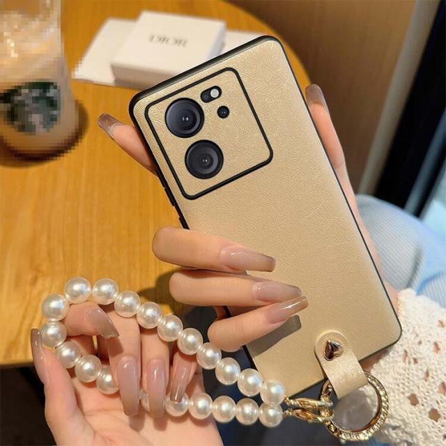 Xiaomi 13T ケース 13T Pro ケース /カバー PUレザー ケース ラインストーン 真珠風ストラップ付き 持ち手 ハンドストラップ 落下防止 片手操作 取っ手 ストラップホール付き 小米 シャオミ 13T/13T プロ おしゃれ おすすめ シャオミー