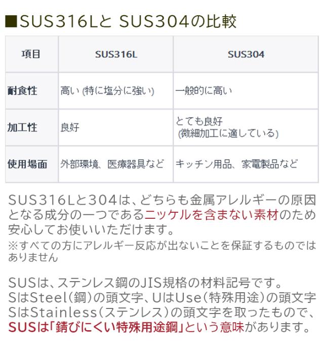 もちろんSUS304素材もニッケルを含まないため、金属アレルギーの心配も少なく安心してお使いいただけます。
