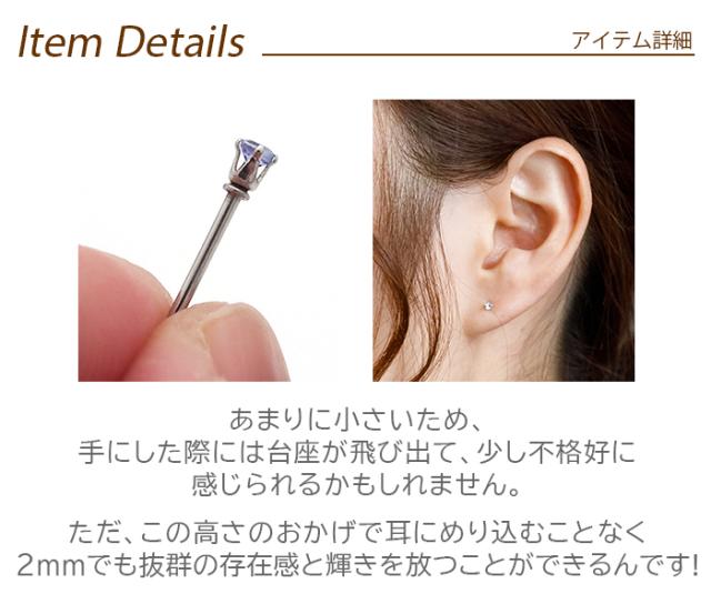 | 石の直径 約2mm ポスト 太さ:約0.8mm 長さ:約10mm |