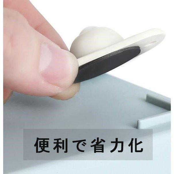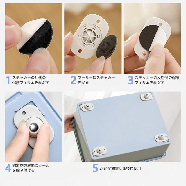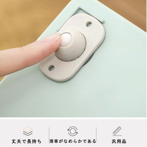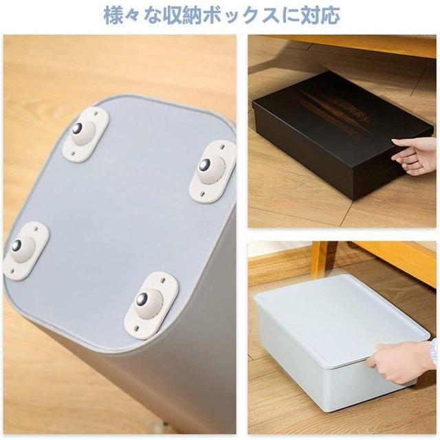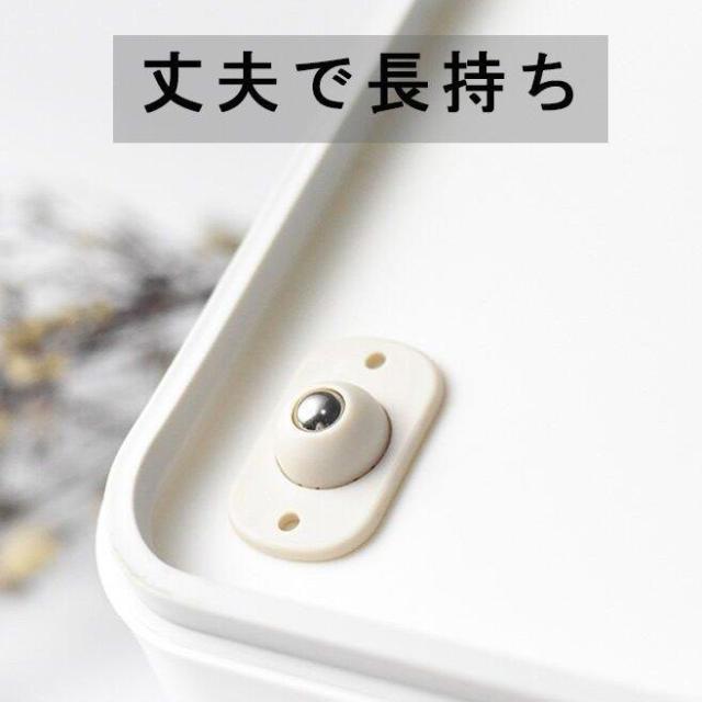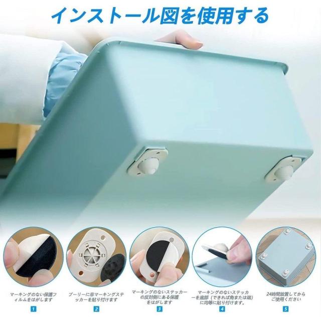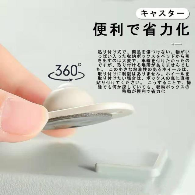 収納ボックスに取り付けたい場合は、設置する面をぬれ雑巾などでしっかり拭き、よく乾かします。付属の両面テープの剥離紙をはがしキャスターに貼り付けます。掃除や何が探したい時、収納ボックスの移動を便利になる。シンプルなデザインですが、実用性に優れ、使い勝手も抜群です。