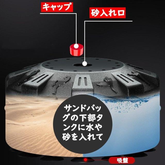 脅威の安定感!!大型吸盤付きに改良されました。お子様の使用のみであれば吸盤のみで砂や水を入れずに使用していただくことも可能です。(安定感が悪いようでしたら水や砂を入れてください。