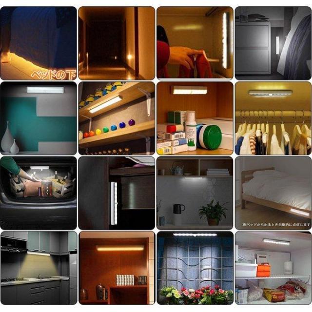 ★【2 種類粘着固定方式】マグネット式:3M粘着テープをセンサーライト底面に貼り付け、金属台座と固定できる(例えば:車のトランク、倉庫、闇部屋、廊下等)。マグネット式なので簡単に脱着ができます。粘着式:マグネットで金属シートを金属ホルダーに貼り、次に、3M粘着剤のカバーを剥がしてフラットに貼ります(例えば:ワードロープ、キッチンカウンター等)